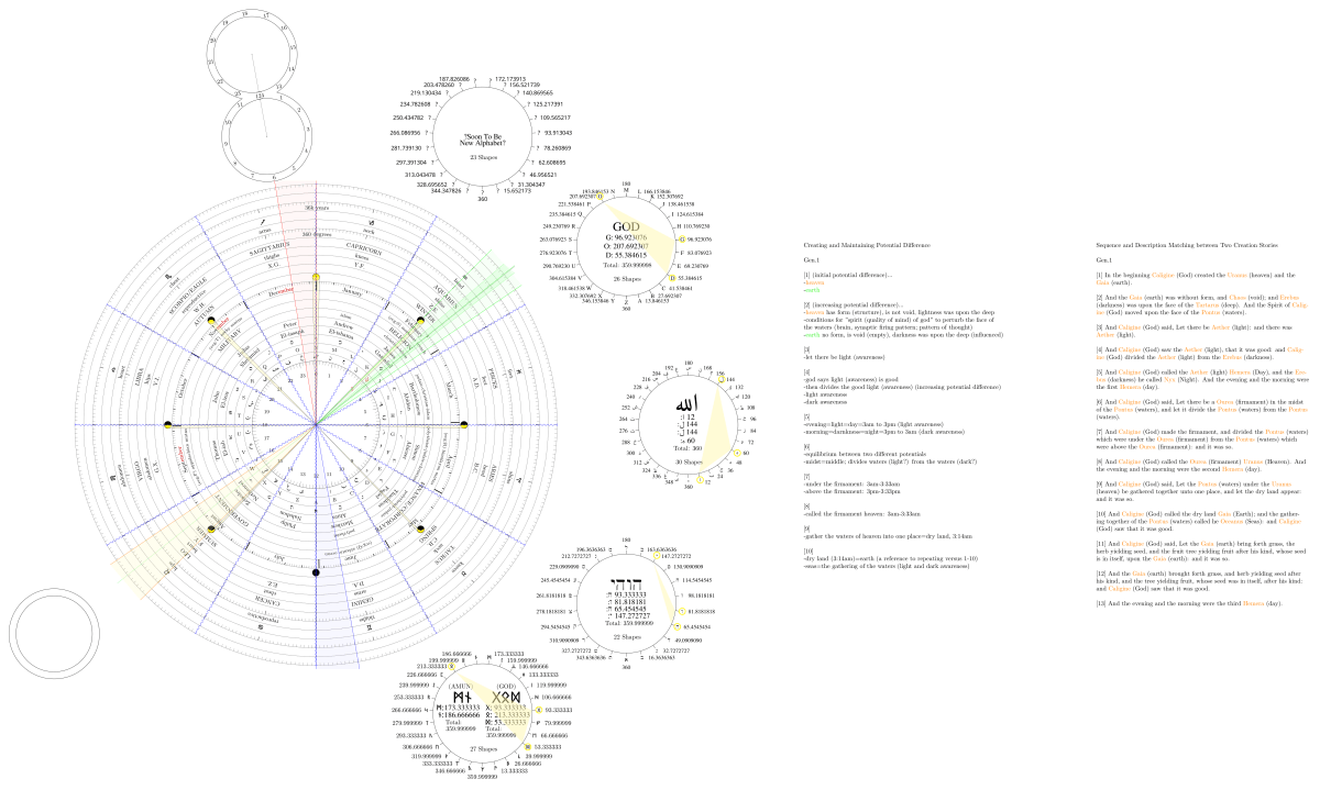 23 shapes in new alphabet: 2 shapes sum to 359.999999999999, deity continuation (if rounding, others to choose from)