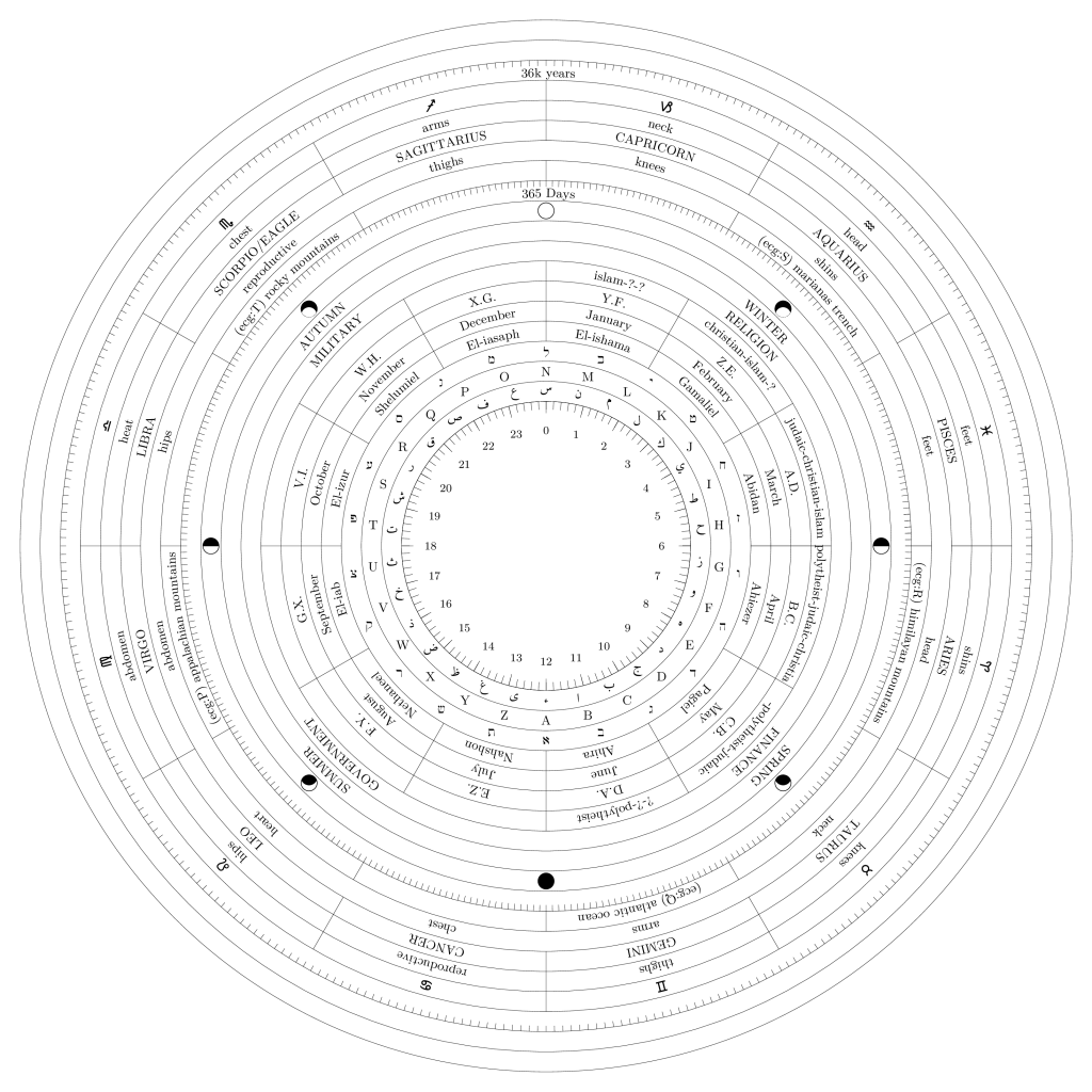 human story direction: clockwise time scale: periods of short duration constellation representation: words for each zodiac