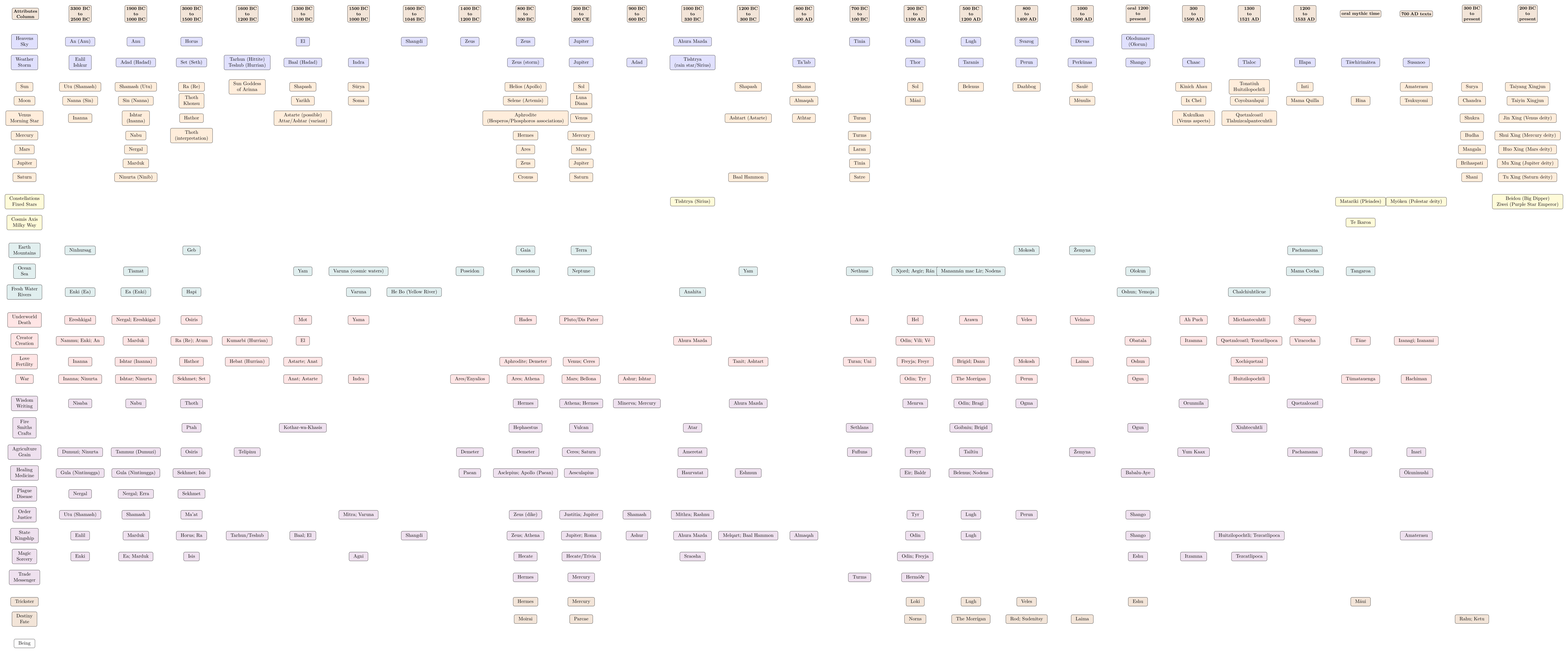 gods story direction: counter-clockwise time scale: periods of long duration constellation representation: shape/symbol for each zodiac